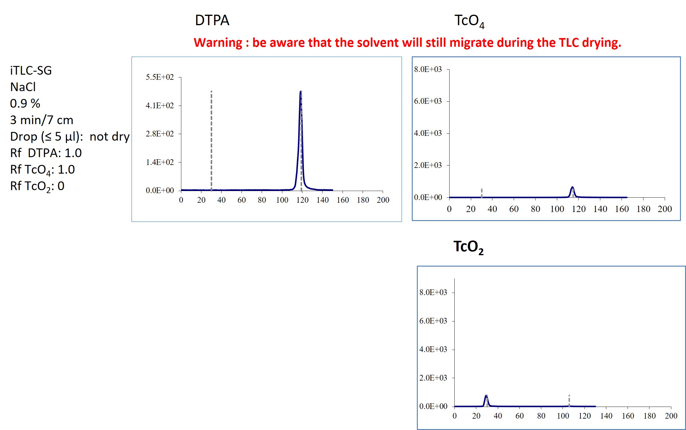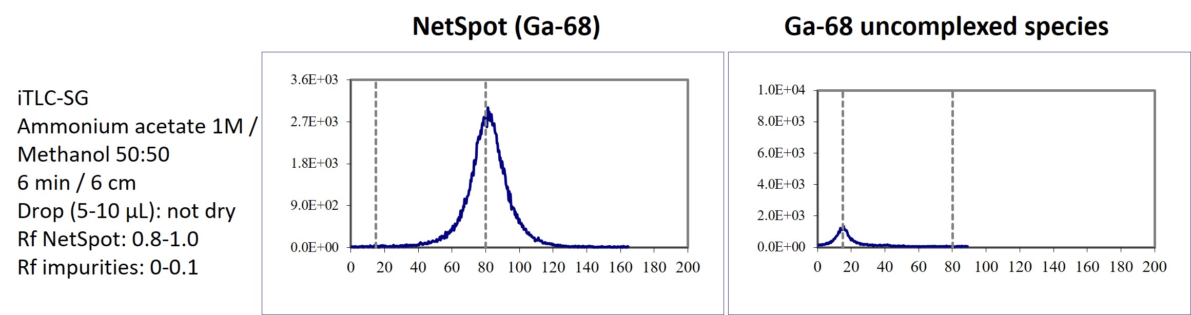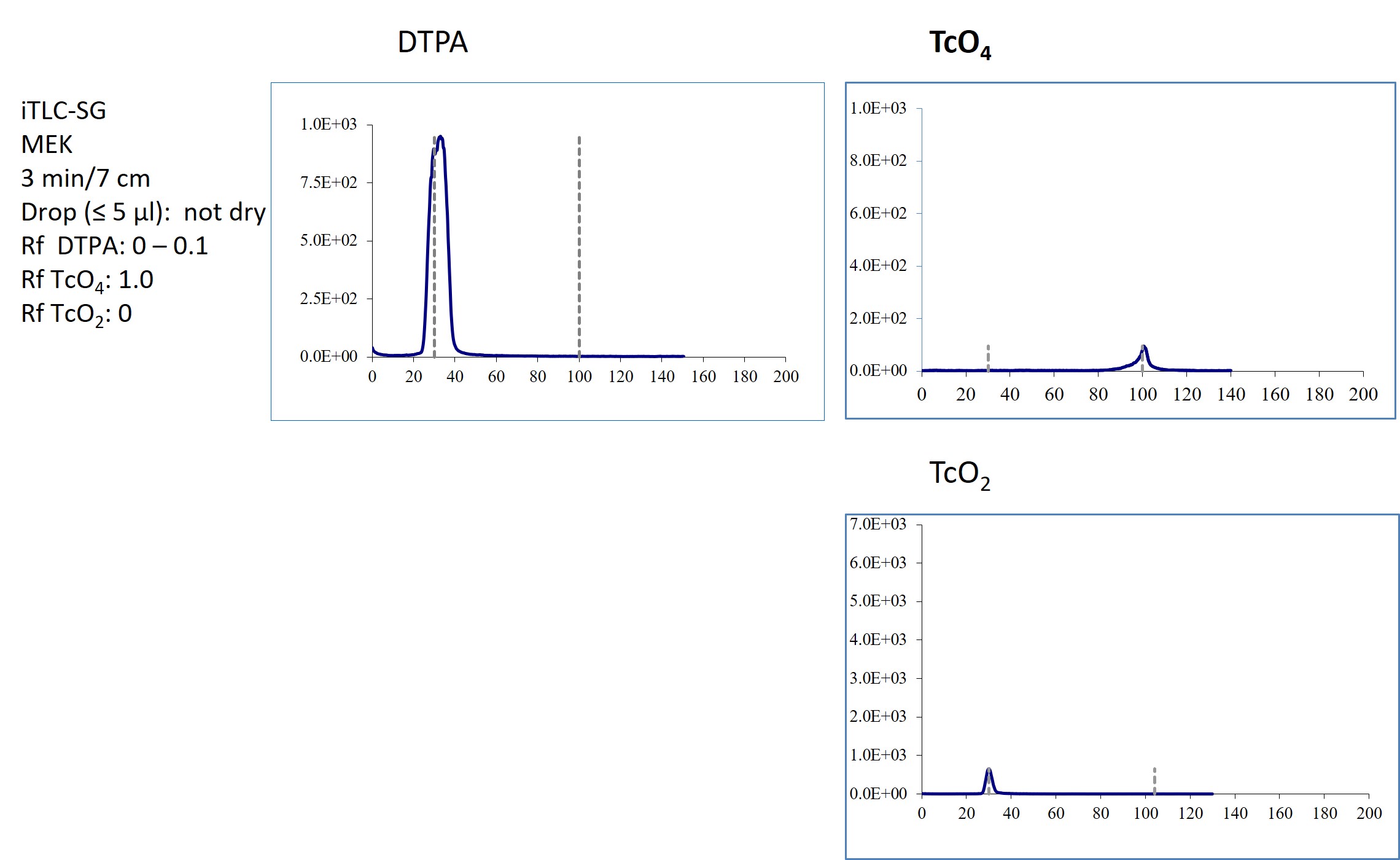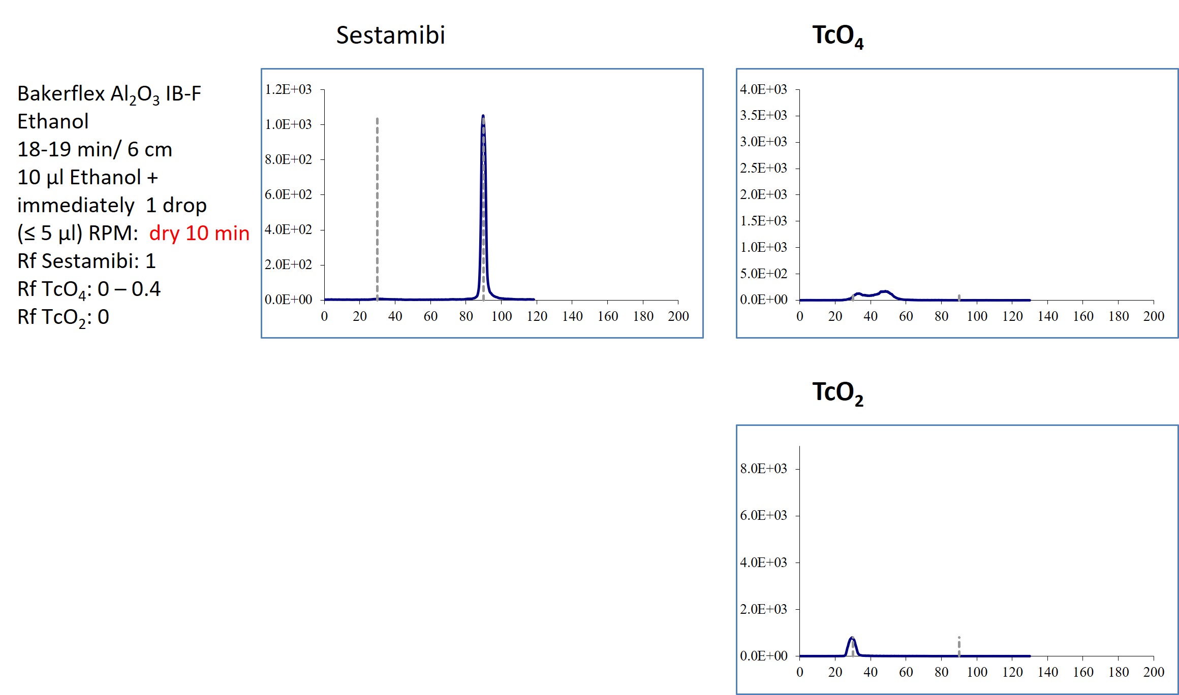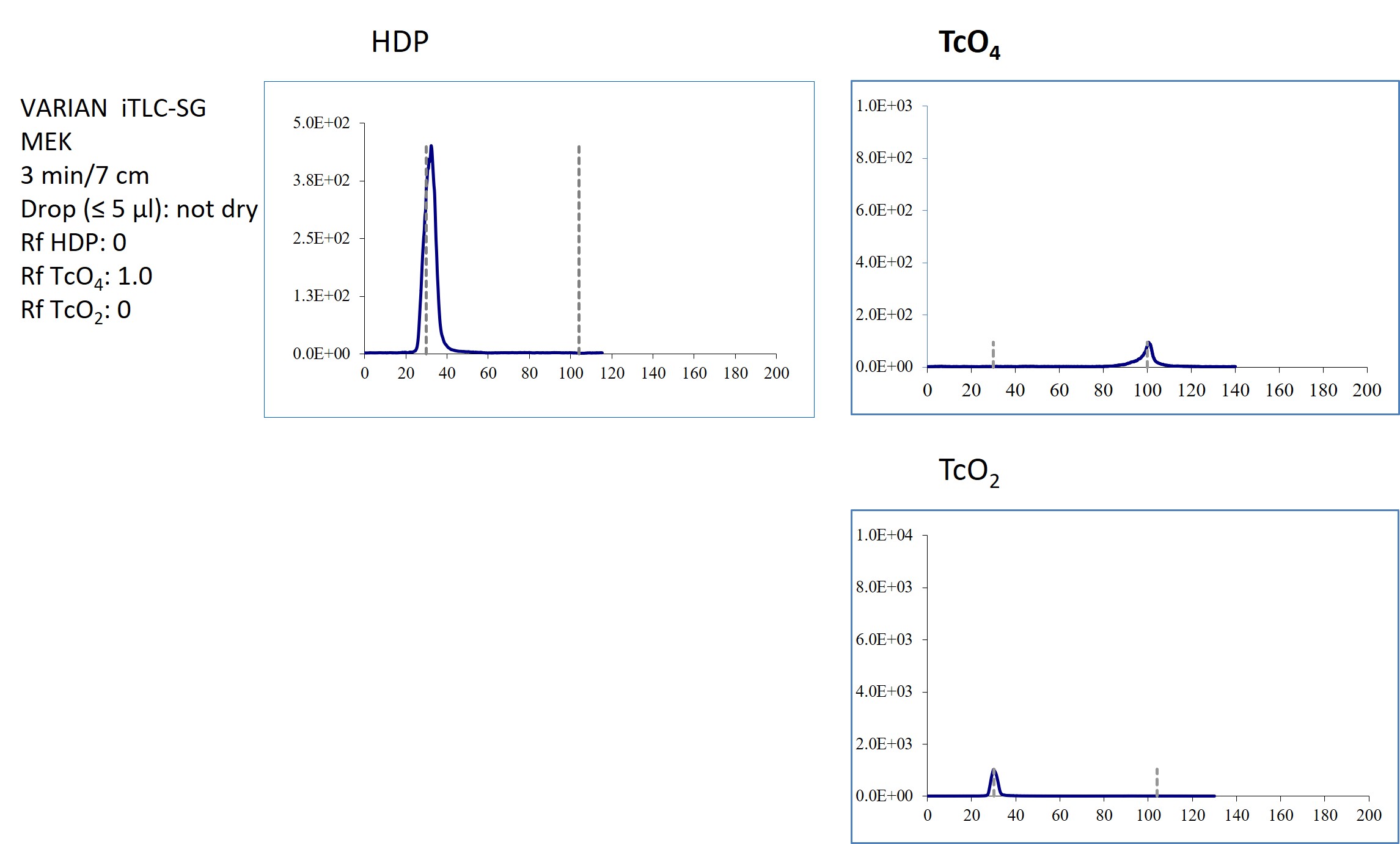 Les exemples de radio-chromatogrammes selon les SPC des produits radiopharmaceutiques les plus courants sont disponibles ci-dessous.