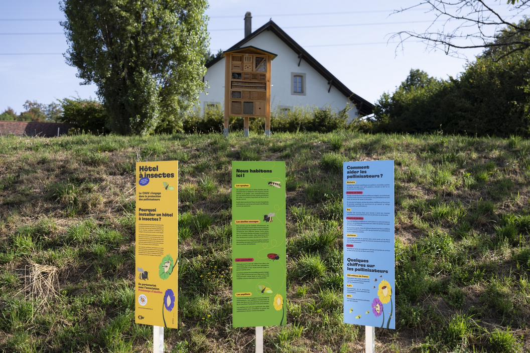 Créés par de jeunes patient-e-s de pédiatrie avec l’aide du Service éducatif et en collaboration avec l’Association Printemps d’abeilles, les hôtels à insectes ont été installés sur différents sites du CHUV: à Nestlé, au Centre des laboratoires d’Epalinges (CLE), à Cery et à Prangins. Disposés sur des lieux de passage, ils permettent à chacune et chacun d’observer les insectes s’y établir progressivement.
