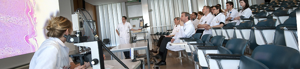La formation des médecins spécialistes en dermatologie et vénéréologie ainsi que par la suite leur formation continue est assurée par notre service. De plus, nos médecins cadres assurent les cours prégradués des étudiants en médecine.