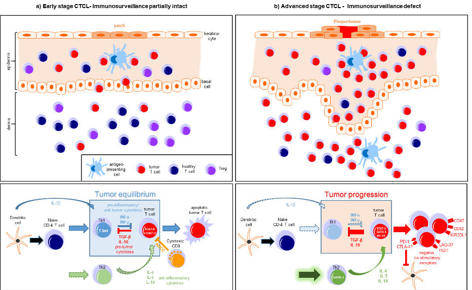 Our group performs research at the crossroads of immunology and tumor biology, with a focus on primary cutaneous cell lymphomas and inflammatory skin diseases. We aim to understand the innate and adaptive immune mechanisms and their impact on development of skin T cell responses against non-self/cancer, immune suppression and superinfection.