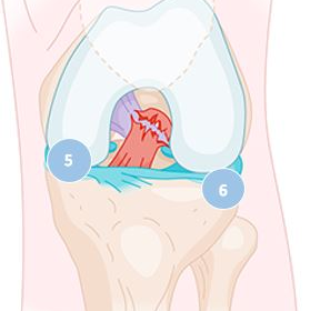 Le ligament croisé antérieur (LCA) assure la stabilité du genou dans les rotations et les translations antérieures du genou. Il fonctionne également comme protecteur des ménisques interne (5) et externe (6)
