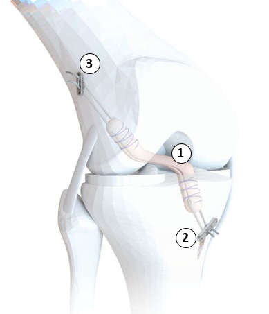 L’opération a pour but de remplacer le LCA rompu par une greffe de tendon, prélevé sur l’enfant (autogreffe), qui provient généralement d’un des tendons (tendon du demi-tendineux DT) des muscles ischio-jambiers. L’intervention est réalisée par arthroscopie, c’est-à-dire à l’aide d’une petite caméra.