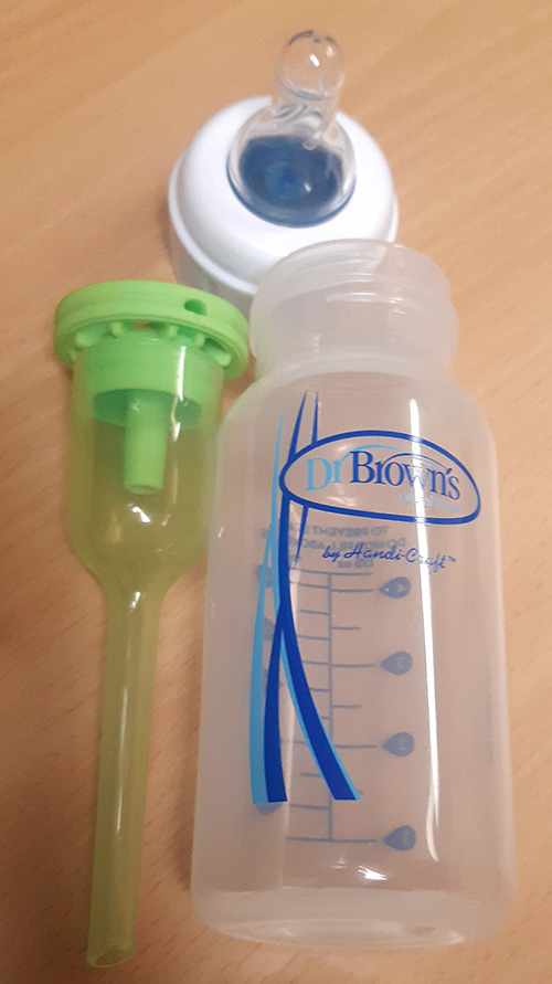 Un biberon de type Brown peut vous être recommandé par notre équipe si votre bébé est né avec un petit poids ou si la fente palatine est très large. Ce biberon permet une aspiration de lait plus simple, grâce à une prise d’air judicieuse.