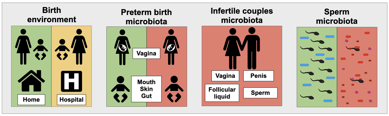 Our research interests span between the early stages of microbial colonisation of the newborns, the impact of the microbiota on preterm births, the interplay between partners’ microbiota and its possible role in infertility.