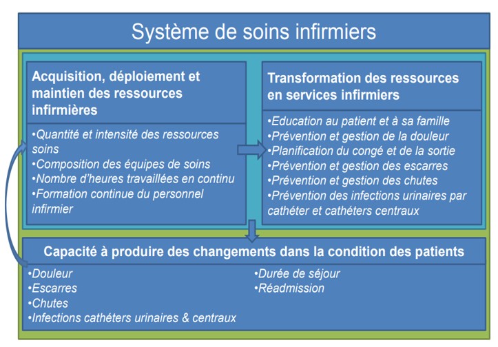 Les infirmières et infirmiers constituent le corps professionnel quantitativement le plus important à l’hôpital et la littérature scientifique indique que leurs soins contribuent significativement à la performance des organisations de santé. Cette contribution reste pourtant le plus souvent invisible et sous-estimée. Les tableaux de bord hospitaliers comportent d’ailleurs peu de données sur la performance des soins et les cadres soignants n’ont pas facilement accès à une information qui permette de suivre la performance de leurs unités et d’appliquer les mesures correctrices.
