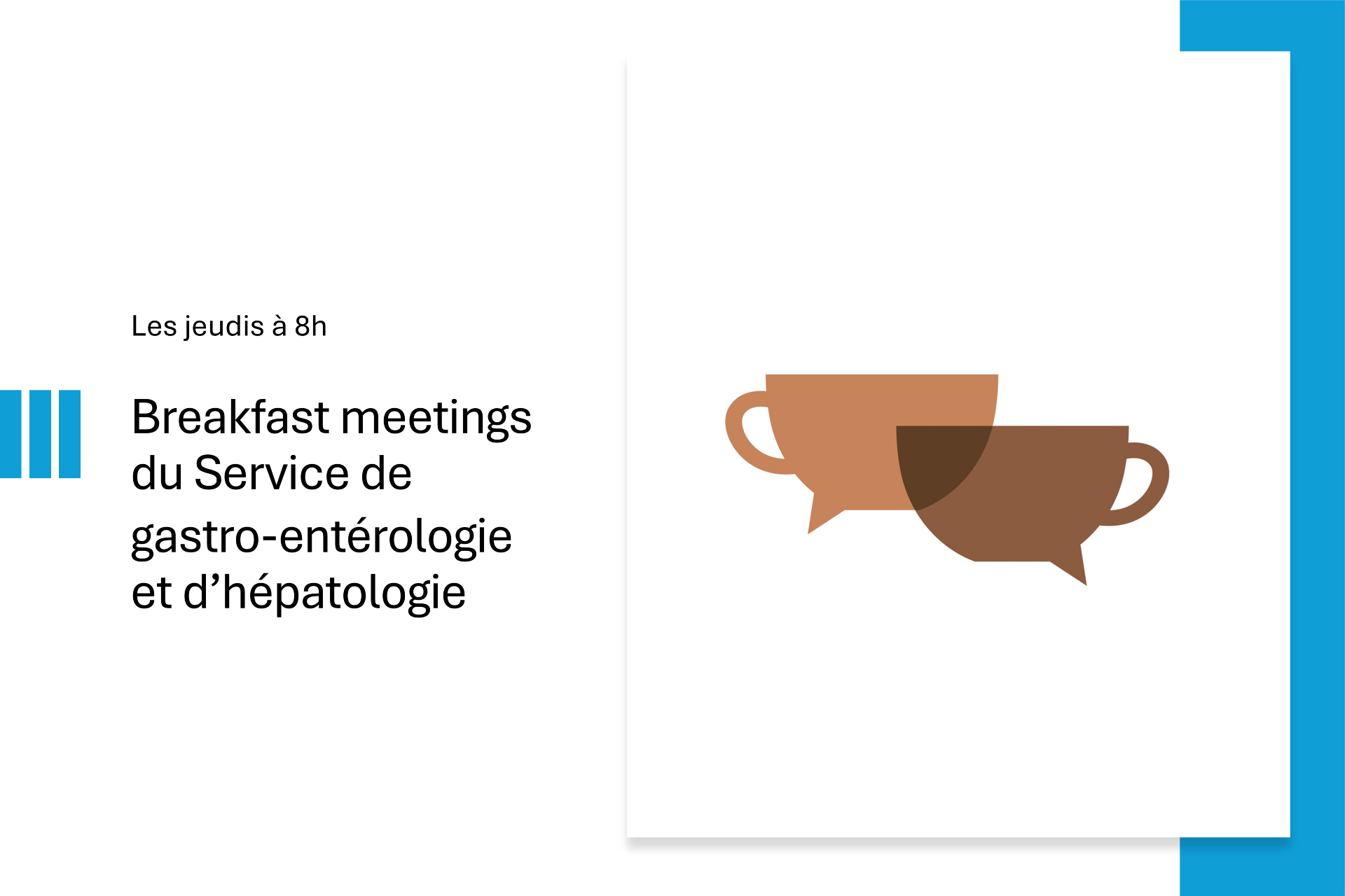 Découvrez le programme des breakfast meetings du Service de gastroentérologie et hépatologie, les jeudis à 8h