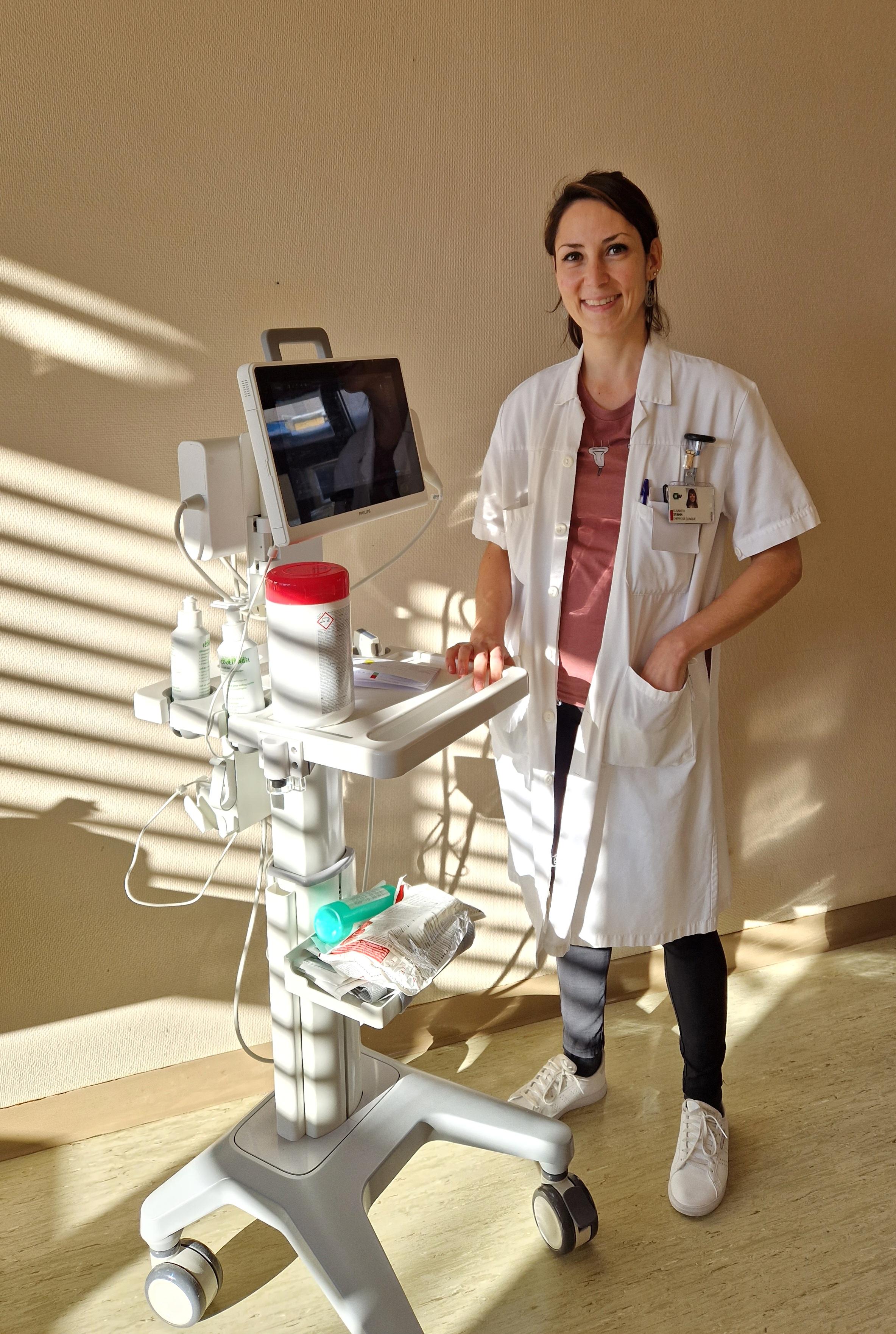 Disposer de cette technique simple dans les unités de Gériatrie apporte de nombreux avantages: au niveau diagnostique pour les médecins et en termes de confort pour les patients. Le Service de gériatrie et de réadaptation gériatrique a récemment acquis deux appareils d’échographie, l’un pour l’Unité de réadaptation gériatrique (CUTR Sylvana), l’autre pour l’Unité de Soins Aigus aux Seniors (SAS) et le Centre de Gériatrie Ambulatoire Communautaire (CGAC). L’échographie est un outil simple et utile pour poser des diagnostics rapides et précis au lit du malade en plus de l’examen clinique, notamment pour évaluer une dyspnée, des douleurs abdominales, une rétention urinaire, investiguer un syndrome inflammatoire ou estimer la volémie. En outre, l'échographie facilite et sécurise les gestes thérapeutiques tels que la ponction pleurale ou l'évacuation de l'ascite ; elle est indispensable pour la pose de cathéters veineux profonds de type MIDLINE.