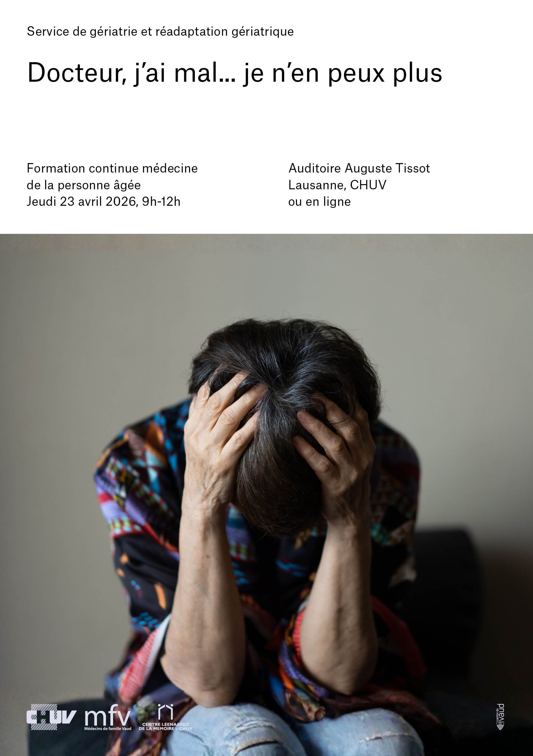 23 avril 2026, 9h-12h « Docteur, j'ai mal... je n'en peux plus »ProgrammeInscription