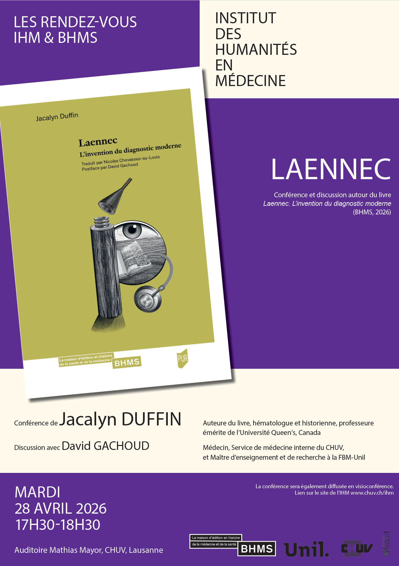 Conférence et discussion autour du livre paru aux éditions BHMS (2026) Laennec. L’invention du diagnostic moderne