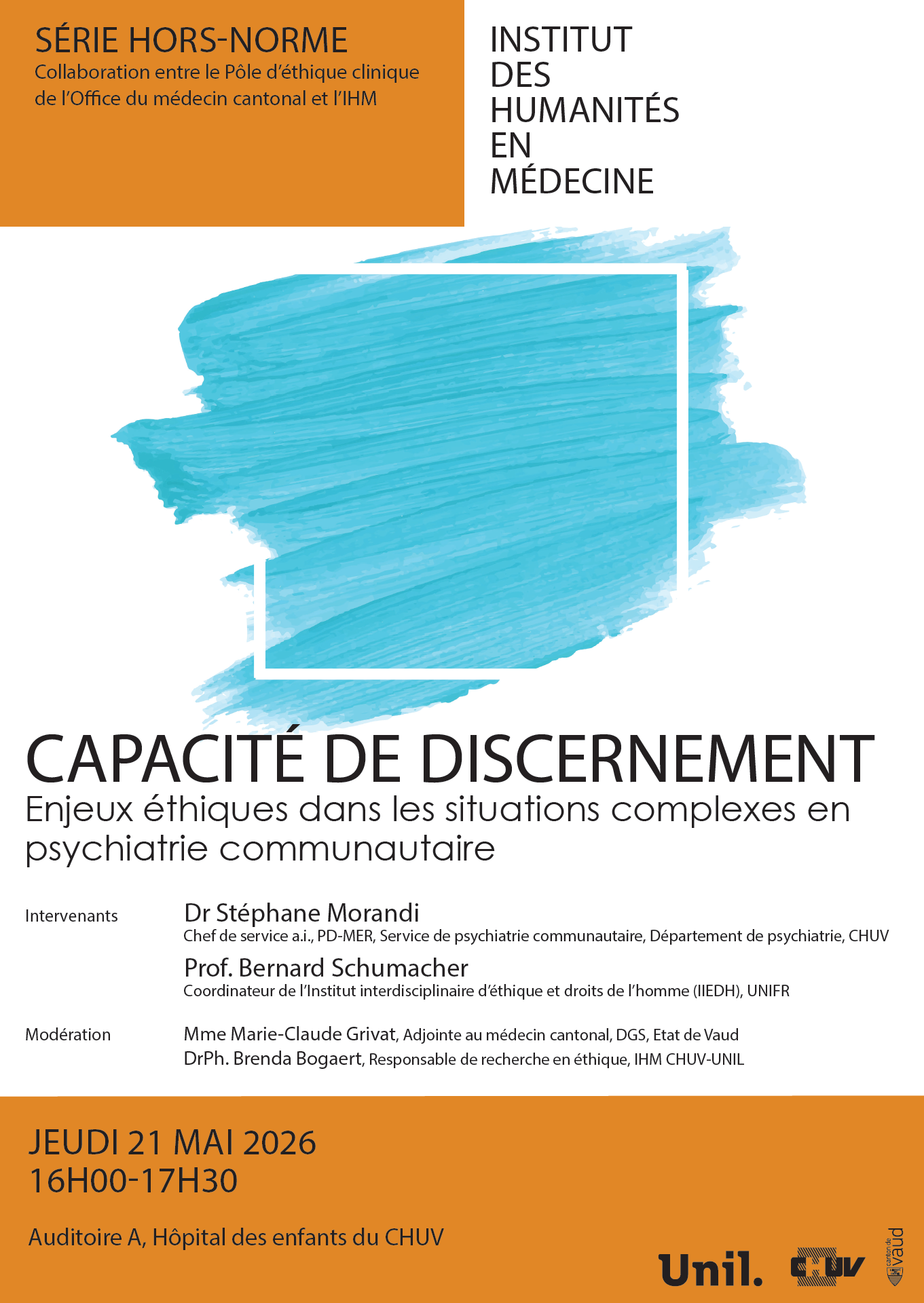 La série est co-organisée par le Pôle d'éthique clinique de l'Office du médecin cantonal (DSAS, État de Vaud) et l'IHM.