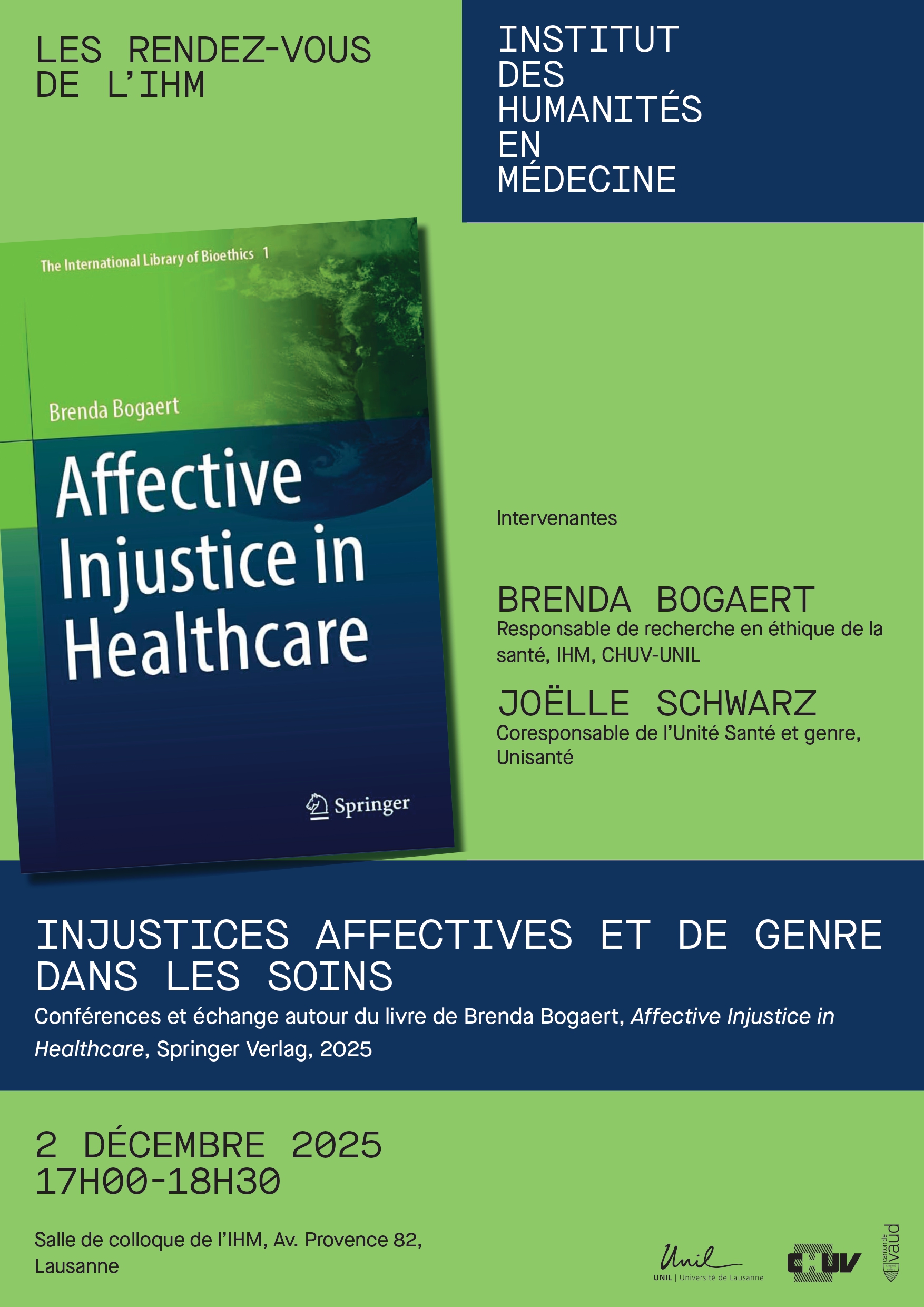 Cet événement est organisé à l’occasion du vernissage du livre de Brenda Bogaert Affective Injustice in Healthcare, Springer Verlag 2025