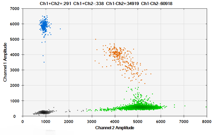 L’échantillon est fractionné en environ 20 000 gouttelettes et une amplification PCR s’effectue dans chaque gouttelette individuelle. Après la PCR, chaque gouttelette est analysée afin de déterminer la fraction de goutelettes positives dans l'échantillon d'origine.