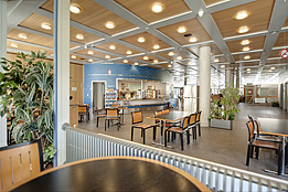 La cafétéria est accessible aussi bien aux patient-e-s qu'au personnel et au public en général.