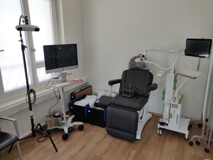 This lab regroups equipment to study the neural mechanisms and plasticity of the brain by means of non-invasive neurostimulation and neuroimaging techniques. It hosts a transcranial magnetic stimulation (TMS) device with single-pulse, double-pulse and repetitive pulse stimulation capabilities, coupled and synchronized to a 128-channel electroencephalogram (EEG) for non-invasive recordings with high temporal resolution.