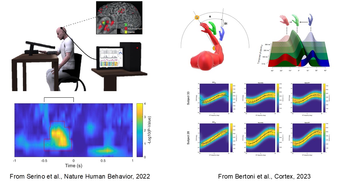 In this line of research, we investigate how multisensory and motor signals are processed and integrated within peripersonal space, how they affect perception and cognition, and how they are modulated by the level of consciousness (e.g. awake, sleep & coma). The techniques mainly employed are psychophysics, brain-computer interfaces via EEG, virtual reality and computational modeling. The populations studied are primarily healthy participants and comatose patients.