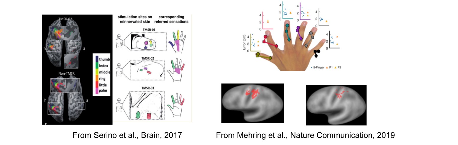 In this line of research, we investigate somato-motor, visual, and nociceptive neural representations pertaining to the body, and how these interact with peripersonal space representations as well as higher-order experiential phenomena and cognitive processes such as the body ownership, agency, memory and decision-making. The primary tools used in this line of research are high-field functional MRI, MR-compatible robotics, virtual reality and advanced imaging analysis techniques based on machine learning. The populations studied are primarily healthy participants, amputees, stroke patients and patients suffering from chronic pain (phantom limb pain & complex regional pain syndrome.