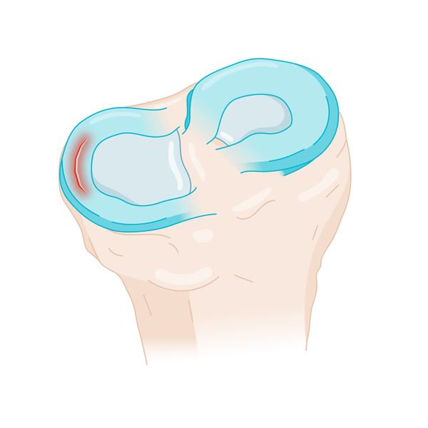 fig. 13 : petite déchirure méniscale sur le versant interne qui peut être réparée par le biais d'une suture