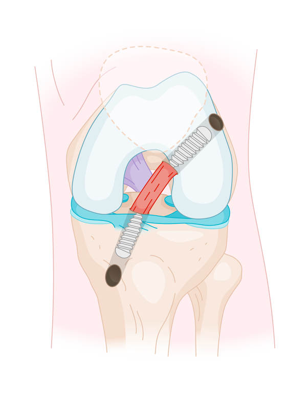 fig. 2 Ligament croisé antérieur après réparation : le ligament est remplacé par un greffon fixé par des vis progressivement résorbables