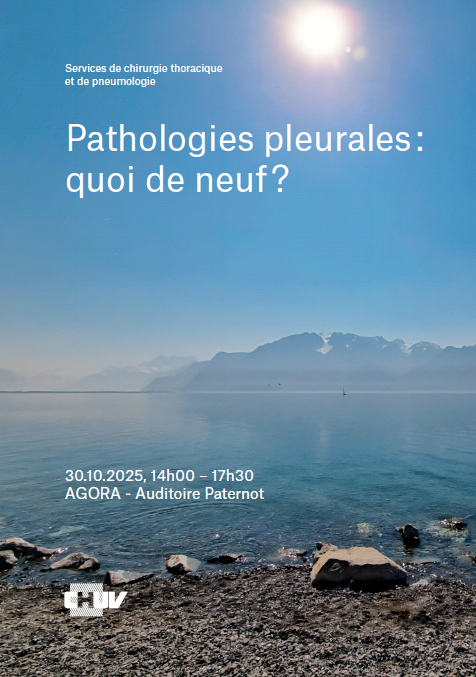 Nous sommes très heureux de vous accueillir à notre symposium « Pathologies pleurales – Quoi de neuf ? ». Cette rencontre s’adresse à toutes celles et ceux qui s’occupent de patients atteints de pathologies pleurales : médecins de famille, généralistes, internistes, pneumologues, oncologues, ainsi que nos collègues hospitaliers du CHUV.