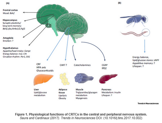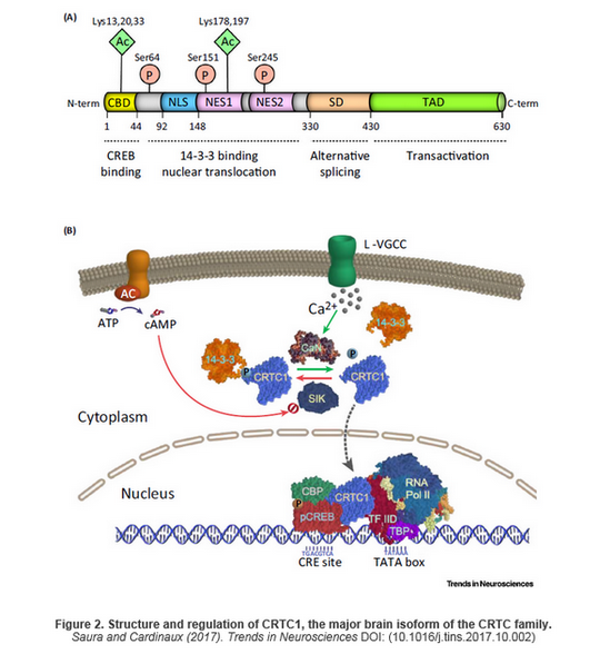 - Saura, C.A., and Cardinaux, J.R. (2017). Emerging Roles of CREB-Regulated Transcription Coactivators in Brain Physiology and Pathology. Trends Neurosci. 40(12), 720-733.