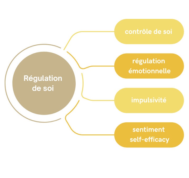 La régulation de soi est la capacité permettant de s’adapter à son environnement en constant changements et d’atteindre un but à long terme (Nigg, 2017). En d’autres termes, ce sont des processus intrinsèques qui permettent de contrôler nos émotions, pensées et comportements, et relient souvent nos actions présentes à des objectifs plus lointains. Elle est considérée comme un médiateur central du bien-être et de la santé mentale.
