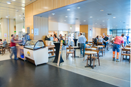 La cafétéria est accessible aussi bien aux patient-e-s qu'au personnel et au public en général.