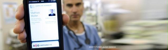En collaboration avec Dr Jocelyn Corniche, médecin anesthésiste au CHUV et à la REGA, Swisstransplant lance la première carte de donneur du monde au format numérique. Cette carte peut d’ores et déjà être remplie avec l’application Echo112. Lorsque son titulaire entre dans un service d’urgences, la carte de donneur s’affiche sur l’écran verrouillé du smartphone et peut être consultée par le personnel médical.